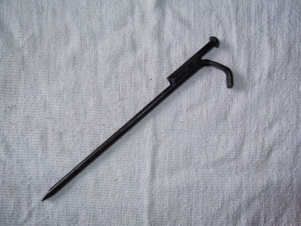 Take a piece of 1/16" or 3/32" X 1" brass, about 8" long. Hammer over the last inch into a 90* bend.