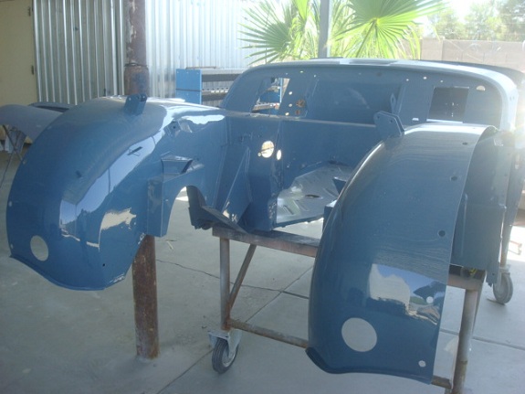Frank I was excited when I started to take the car apart for restoration when I found undisturbed paint under the stone guards. I ordered a Certificate and found the car was a Winchester blue car. When I purchased the car it had been painted Tan with a black engine compartment.