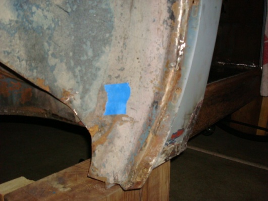 The inner sills on my car seem to have been a bit to long when new at the factory. I've looked at other cars and some have the same dents in the inner fender that mine has. And being as anal as I am I want to remove this dent. It looks like at the factory they just hit the inner fender with a hammer to get the body to sit over the sills. Has any body else had to do this repair? Is the end of the inner sill boxed? If not I would like to try to trim the end somehow so I could hammer back the dent. Please look at the picture to see the area of question just below the tape. Thanks