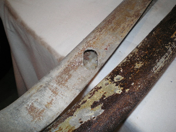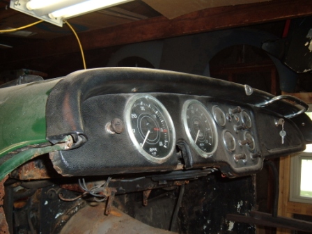 I have 2 dash rails from ebay. One has a pair of elongated holes on both sides (for the handle). It has been recovered over top what might be original leather. The mounting holes seem to line up perfectly with the holes in the body of the car.