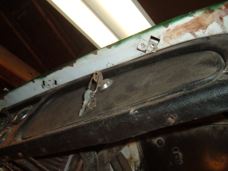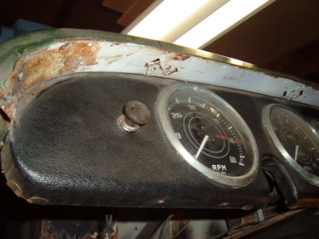 The other dash capping has no elongated holes, (is a little bent up) has glue on the inside and the covering removed, but the holes all seem to be off about 1/2" towards the right side of the car. It has 2 sets of 2 holes where the crash handle screws would go (on the right side only).