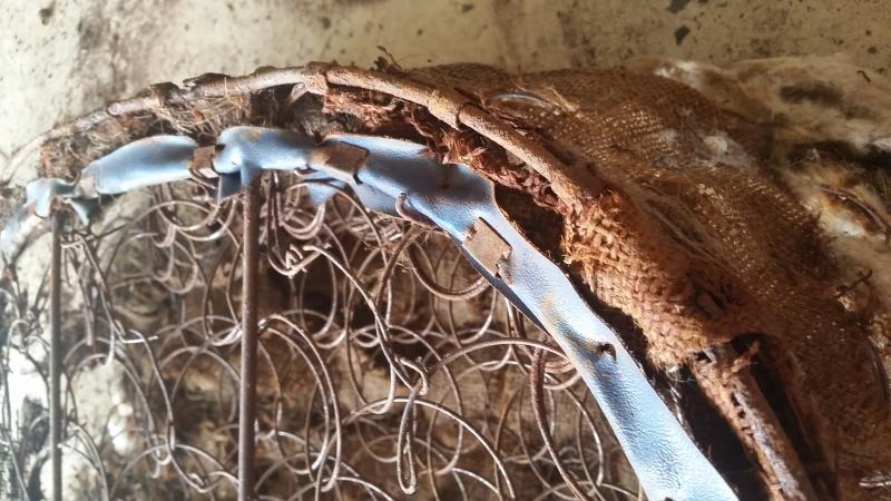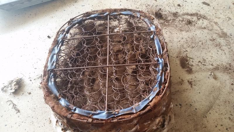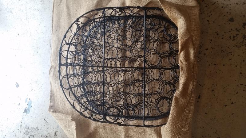 Note that the burlap is stitched to the spring frame to hold it in place...otherwise it will slip over time. Do not use hog rings here, as they will eventually wear through the cover.