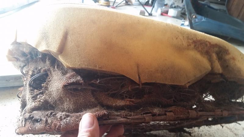 Does anyone have any step-by-step pictures on rebuilding the bottom seat portion using the Moss seat kit? Plenty of pictures of the back rebuild and completed shots but none on the reassembly/covering of the spring bottoms. I know it's not an overly complicated setup and that I'm making complicated then need be but I'd like to make sure I get it right before I cut anything. Reverse assembly sounds logical but the seats were redone at one time by using only a foam pad placed over the springs, then covered by the seat covering. Thanks in advance for any pics.