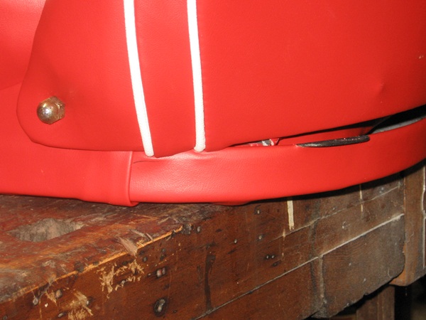 My seats pans were covered in vinyl, but when I redid the seats in leather, the kit from TRF came with extra leather to do the seat pans, so mine are now covered in leather...red leather. I don't think the pans would have looked good painted in red. As you can see in the pic, the thickness of the leather cased problems with the hinged seat not wanting to go back all the way. However, after it was sat in a few times, the problem disappeared.
