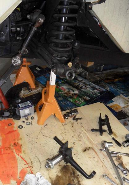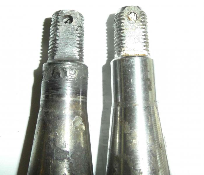 I wish this were hypothetical, but I can't get the stub axle out, the outer threads for the castellated nut have stripped and hammering the other end does not seem to be working...
