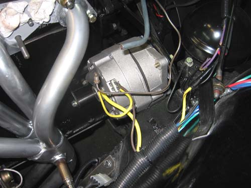 The kit uses a 3/8 diameter bolt (same as the VTR write up), but when you remove the generator front mounting boss it leaves a 1/2 hole in the engine front plate. I know that it will pull up tight when bolted in, but with the load being applied to the pulley at the front it seems to me that the alternator will work inwards, go out of line and have extra load put on its bearings. I have MacGyvered the hole so that a 3/8 hole is present to keep the alignment, but the long bolt won't clear the body crossbrace. So my 2 questions are: