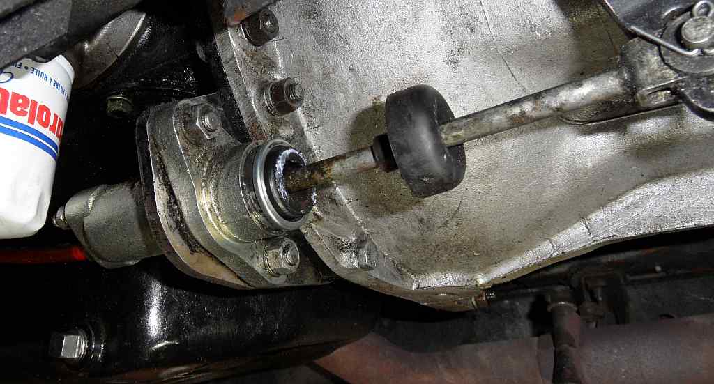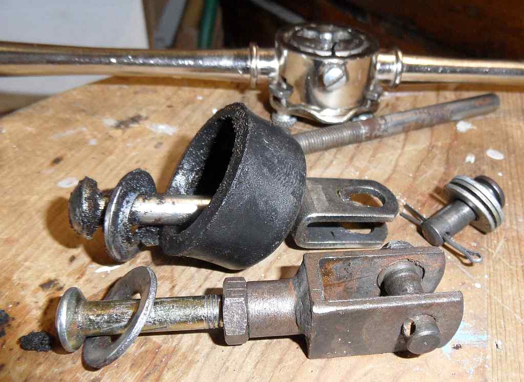 I searched BCF and found only one reference to “clutch travel”, and though it had no closure, it mentioned checking the pedal for wear. After removing the old Spark-o-Matic speaker box, I could see the clutch pedal had at least an inch of free movement before the push rod touched the piston in the master cylinder. Closer examination, I found the clevis at the pedal had become worn and was oblong. The ‘push rod assembly’ is not available without purchasing the entire master cylinder, but I never throw anything away. I happened to have a fork end from the TR3 project that takes a threaded rod (TR3/4 master and slave push rods use the same fork end). Then I took an old push rod, threaded it farther and cut it to length to make an adjustable master cylinder push rod. With this new push rod (pic attached), I can easily get ¾” of travel at the slave lever, but I backed it out to 5/8”.