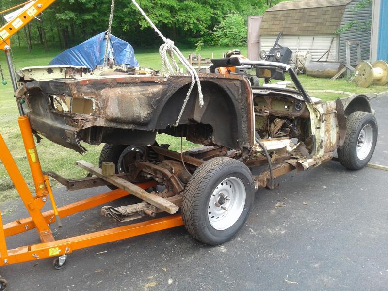 I meant to say in the title is Unfortunately This is killing me to to this to a TR but better to part this out then the entire car go to the crusher and all those pits be lost for eternity. I've got a 69 Tr6 that needs restored and I needed a transmission (this had a A type in it) and wheels and came with new tires already installed. That was worth the value of he car it's self. Mine has the wheels for the Rostyle hubcaps and don't want them and I don't have the hub caps anyway. I purchase it from a guy that only owned it for a month or so and thought he was going to restore it. He soon figured it was beyond repair. Seals inner and outter were gone, driver floor didn't exist, trunk floor was gone and he had to cut the bonnet to open it. Surprisingly the frame is still good and the doors and gaps are fine and opened and closed as new. Lots of engine parts. Block I have someone with dibs on it.
