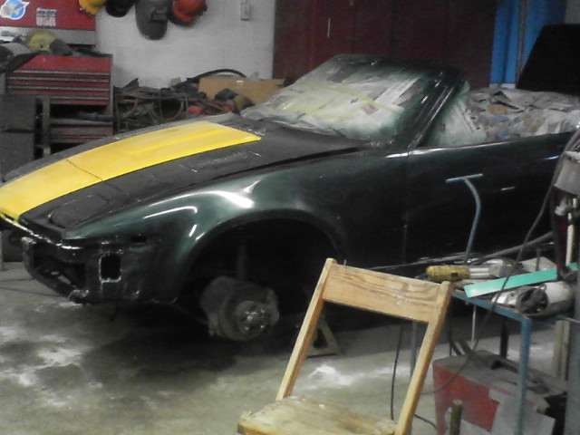 We did not go to bare metal, he scuffed off the cheap resale red and used the factory paint as a starting point. I am not sure of the type of base coat he put on top of that because i was not there that day but it was a light greenish gray. The green was 6 coats of Lotus BRG Metallic. The yellow color was actually my third choice, the first choice ended up being a yellow from a Lambo and a three stage paint and a little more than I wanted to pay, the second was a yellow Metallic used on a Corvette and was almost as much as the first. The PPG guy pulled up all the yellows that were close the the first two choices and I picked the yellow metallic I used, it is an option on Volvo Diesel trucks. I like it. We're are glazing it tonight, I am putting the door hardware and tires on.