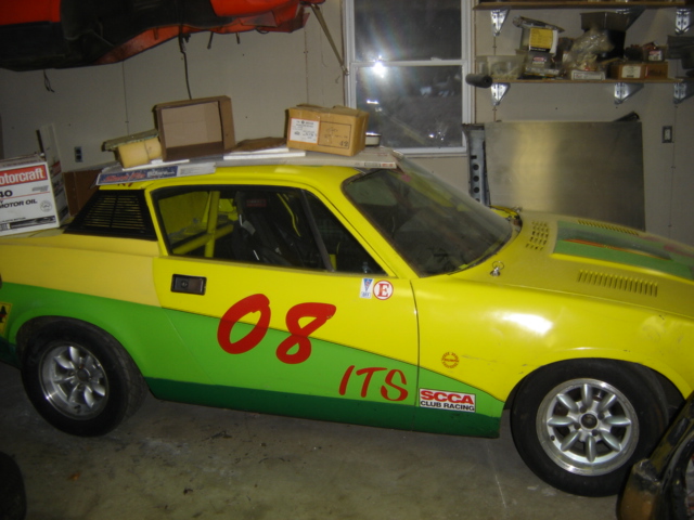 My LBC partner in crime agreed with someone on here that thought it looked like a Lotus paint job. So here are a two preview pics after we took it out of the paint "shed" and moved it to the garage where we wet sanded it and are in the process of buffing it. We are still buffing and are getting ready to hand glaze. The is still lots of dust from the buffing laying around on it and we are starting to put it back together so you have to use some imagination to see what it will look like clean. Maybe some clean pics tomorrow night if the painter's family is done being sick.