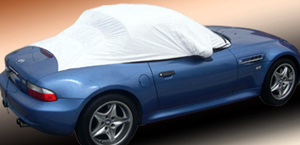 Has anyone ever found, had made, or know someone who might make a fold-up, traveling, "roof cover" for an AH? Not a full waterproof car cover but just a roof and windshield cover. I had envisioned it to be a sun and water/rain blocking, shaped cover. It would be just a bit bigger than the actual car roof, would "fit" over the car top and windshield, and attach in place with bungy cords. If it folded up nice and neat and small for traveling then it could find a home in my car boot for sure. If it had soft cloth around the bottom edge to protect paint jobs, that would be good too.