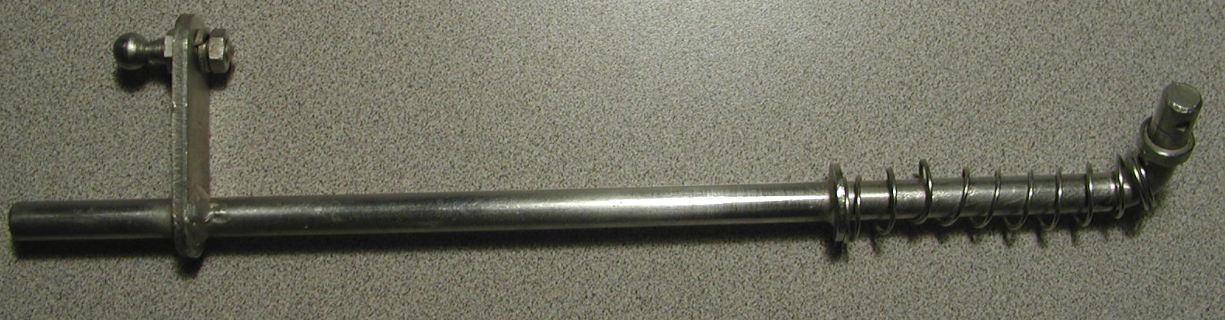It's not an easy part to get pictures of while it's in the car, but I did my best. The overall length of the shaft is almost exactly 9 inches. The bit that turns up at the end furthest from the firewall is about 1.5 inches. As you can see, that part could be a little longer and not hurt much. The connecting rod that goes down to the accelerator shaft is about 6 inches long. That part you will probably want to find from the SU people because it has ball joints on the ends.