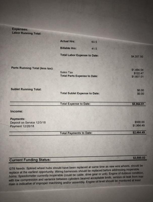 I recently had some work done on the GT6, and I'm not sure that what I paid was actually fair. I haven't had much time to spend on it, so I took the car to a British car specialist near me, a pretty famous one, but they nearly doubled the budget I gave them without approval, and I'm pretty sure the volume of work I got wasn't commiserate.