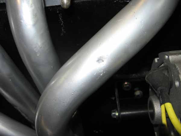 I think I found the problem. Look at the pic. There's a small dent in the header caused by the darn stud on the intake manifold that I never removed!! Had to have caused the manifold not to seat. I can see where the top of the manifold gasket is indented slightly, but nothing on the bottom.