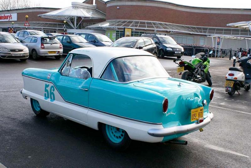 Focal plane shutters can distort dramatically. Consider all those early shots of tall racing cars (e.g. Fiats around 1910-1920) where the car looks like it's leaning forward. That's from the shutters with the slit traveling vertically and the car moving laterally. The car's roof is photographed at a different instant than the lower parts. That's not exactly what happened in this photo but I'd bet it's an Olds combined with a shutter aberration.