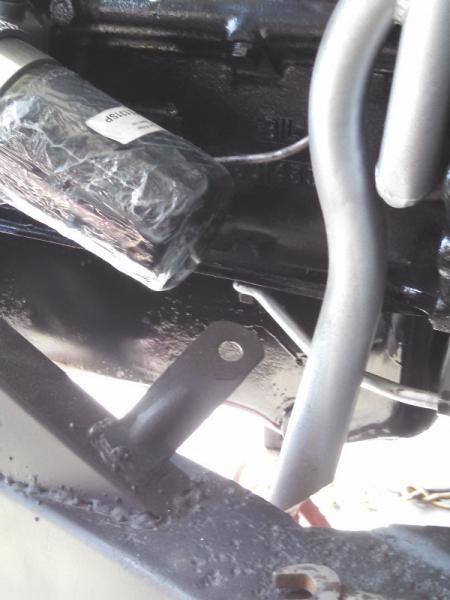 Anyway, in your pic (thanks for that by the way) it looks like the hard pipe may be following the side rail to the front then over to to 4way? Really hard to tell but is the line going thru the bracket hole from the bottom side or the top?