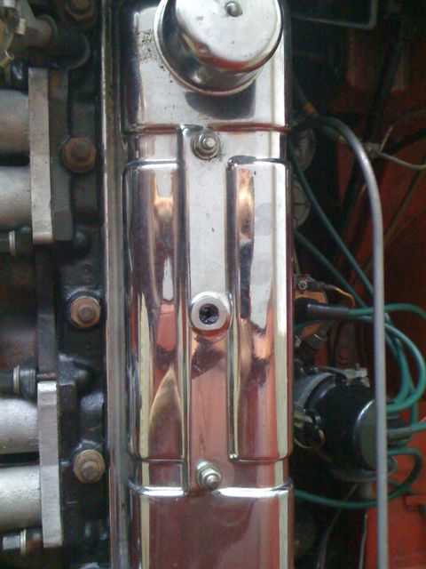 I'm thinking this hole in my valve cover is for where a rebreather would go and then port to the air cleaner. All the pics I have seen just have a bolt in that hole as I don't think a rebreather was standard on my 64 TR4 car. I'm guessing that I'll have to pull the valve cover off and try to back that broken piece out from the underside. Or maybe I'm totally off on the whole thing.