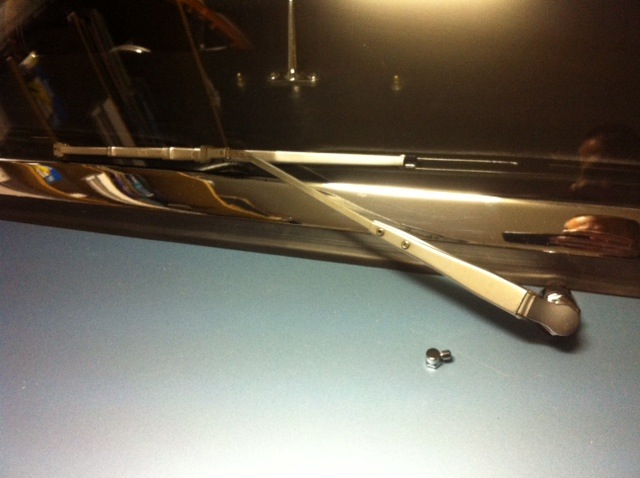 However... While I was doing this my gaze settled on the wipers, and I pondered whether I could improve their function - I know the wipers on all our old cars are typically poor, but I'm sure mine could work better. Anyway, I took them off and noticed the arms were "Made in Australia'... so obviously not original. They are pretty worn and sloppy in the joints and also tend to hit the edge of the screen when working.